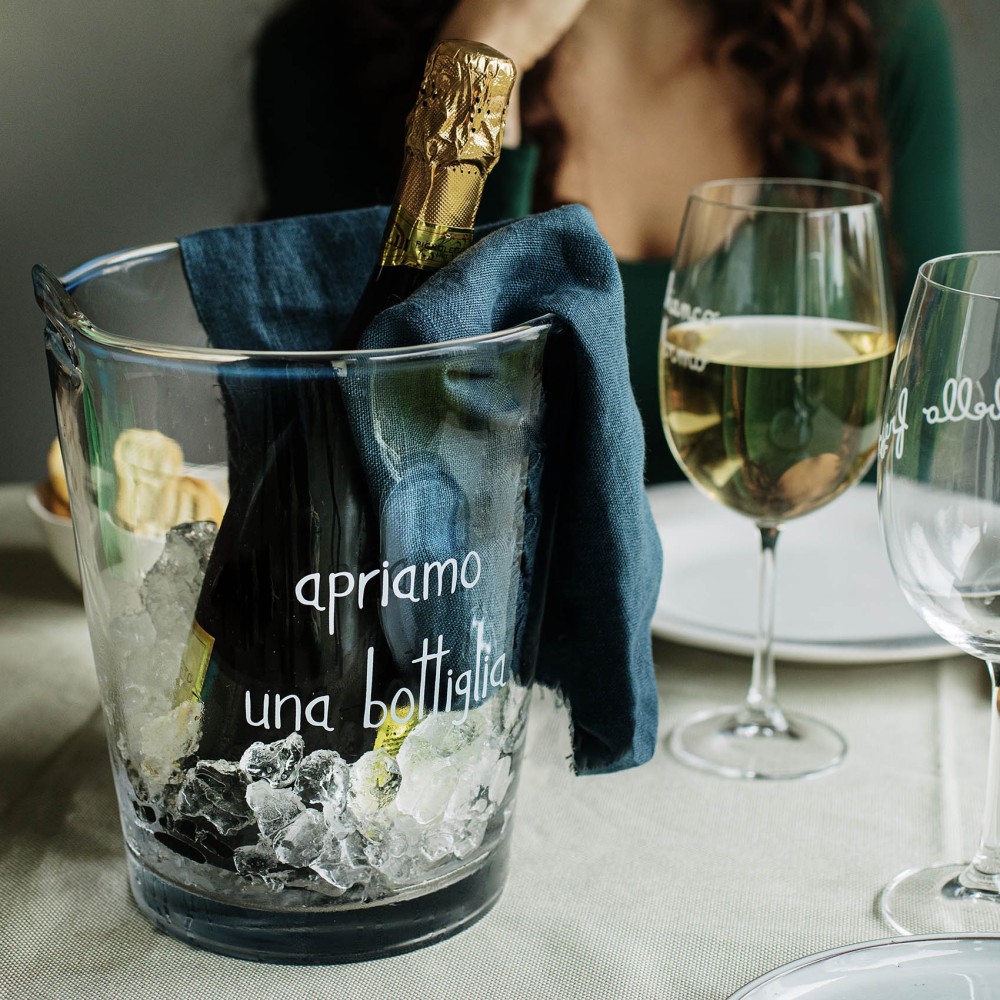 Secchiello portaghiaccio in vetro "Apriamo una bottiglia"