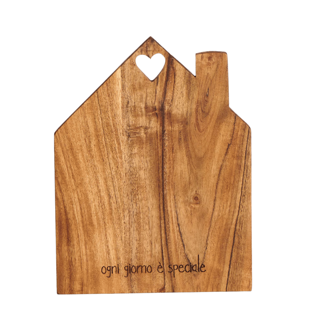 Il Tagliere in legno a forma di casa con decoro "Ogni giorno è speciale" di Simple Day è l'accessorio perfetto per chi ama trasformare un semplice spuntino o un aperitivo in un momento conviviale indimenticabile. Grazie alla sua forma iconica e alla naturalezza del legno, porta in tavola calore e un design moderno tipicamente italiano.